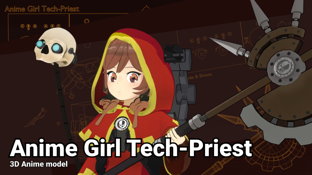 Anime Girl Tech-Priest - 3D Anime model for Blender | umm Warhammer 40000?